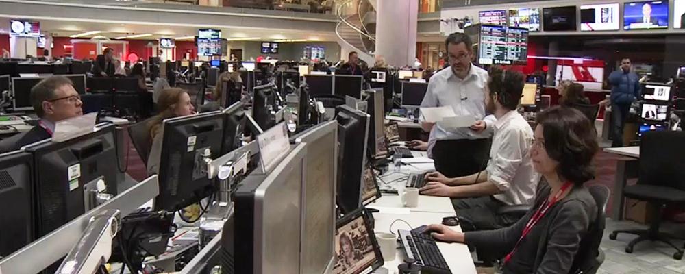 Wer den obenstehenden Situationsplan des BBC-Newsrooms genau betrachtet, stolpert über den Begriff «UGC Hub». Dahinter steckt das «User Generated Content Hub», ein Team von Journalisten, die im 24-Stunden-Rhythmus Bilder, Videos und andere Inhalte im Internet verifizieren und den BBC-Redaktoren zukommen lassen. Über die Arbeit dieses Teams habe ich hier bereits geschrieben.