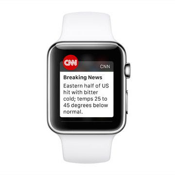 CNN will seinen Usern in erster Linie Breaking News liefern. Apple Watch-Besitzer können aus 12 Kategorien ihre Lieblingskategorie auswählen – das Ganze wird als «Personalisierung» verkauft. In Kombination mit dem iPhone kann man Artikel auf der Uhr vormerken, um sie später auf dem grösseren Bildschirm zu lesen. Ausserdem soll es möglich sein, direkt ab Handgelenk das CNN TV-Programm auf dem iPhone zu starten.