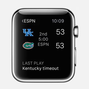 Der amerikanische Sportkanal ESPN gehört ebenfalls zum Kreis der ersten Entwickler, die beim Start der Apple Watch mit einem eigenen Angebot präsent sein werden. Vor allem für heavy Sport-Begeisterte könnte das neue Angebot interessant sein: So liefert die App nicht nur Breaking News aus dem Sportbereich, sondern auch die Möglichkeit, einzelne Spiele via Liveticker mitzuverfolgen.