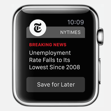 Ein-Satz-Stories verspricht die New York Times ihren Lesern auf der neuen Apple Watch. Diese sollen aus den Bereichen Wirtschaft, Politik, Wissen, Technik und Kunst stammen, wie das Medienhaus mitteilt. Times-Journalisten auf drei Kontinenten sollen eine 24-Stunden-Abdeckung der News-Meldungen – auch auf der Apple Watch – sicherstellen.