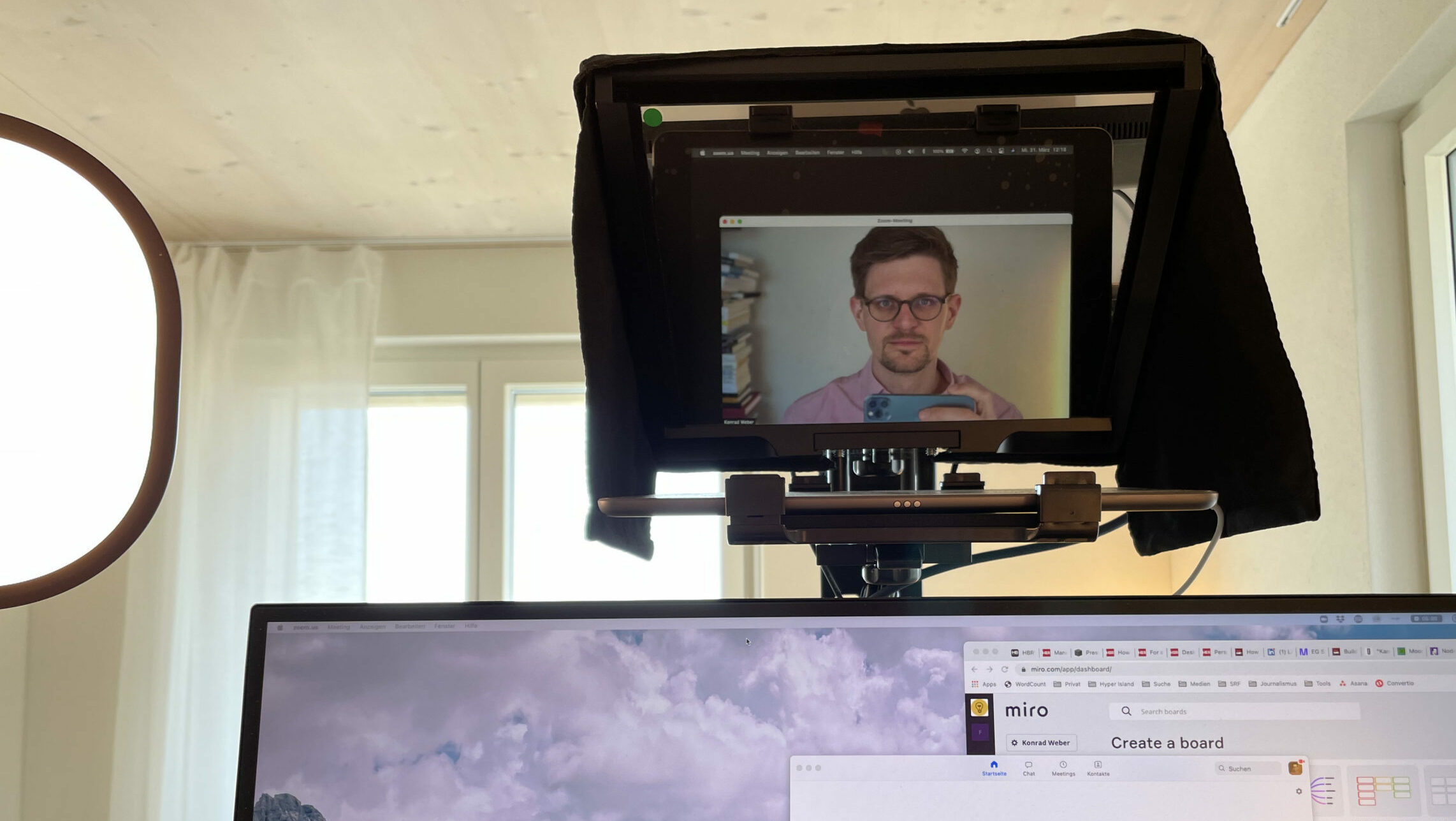 Bessere Bild- und Tonqualität – mit dem bisherigen Setup war ich bereits ziemlich zufrieden. Dennoch störte ich mich immer wieder daran, in 1:1-Gesprächen dem Gegenüber nicht in die Augen schauen zu können. Deshalb hat mich bereits seit Längerem die Idee umgetrieben, einen Teleprompter – wie man ihn aus dem TV kennt – für den Heimgebrauch einzubauen.