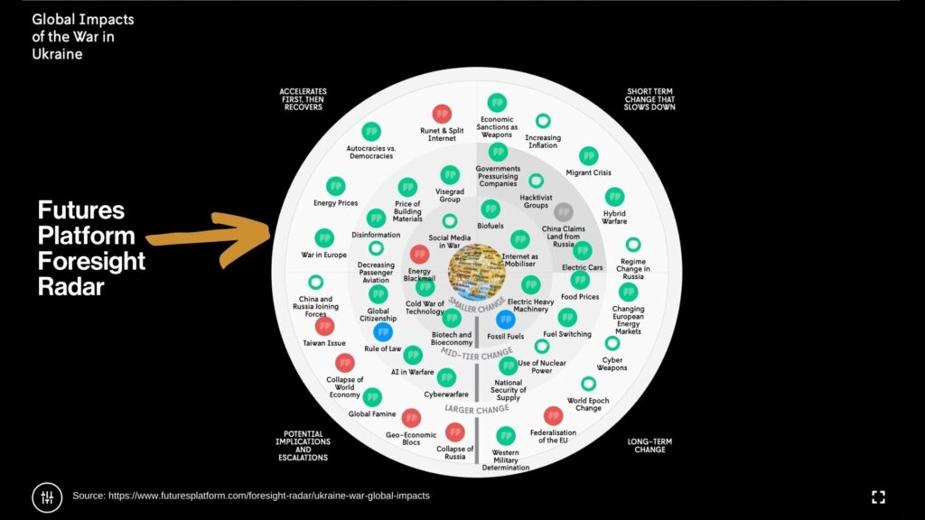 Futures Platform fokussiert auf den Trendanalyse-Teil des Foresight-Prozesses. Mit der Hilfe von KI werden globale Megatrends und zukünftige Entwicklungen identifiziert und visualisiert. Die Plattform ermöglicht vor allem ein breit abgestütztes Horizon Scanning auf Basis von interaktiven Trendkarten.