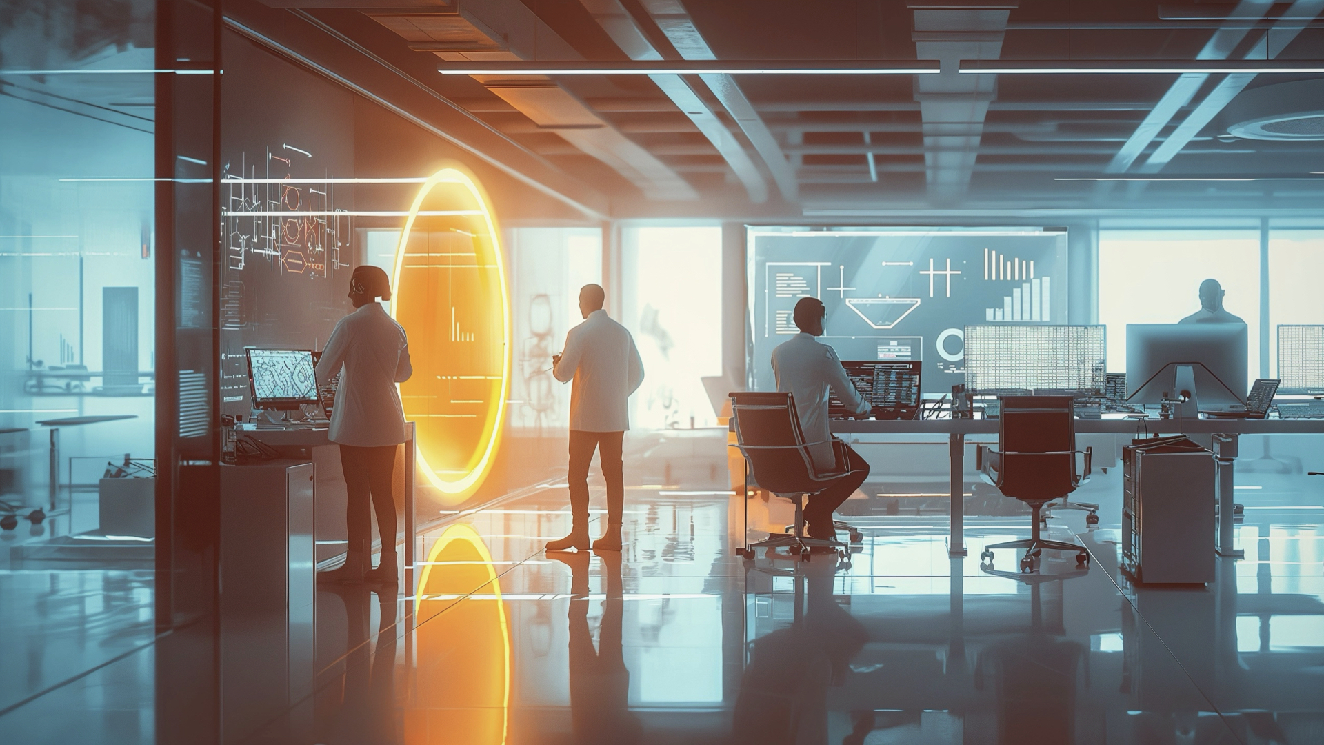 Transparenzhinweis: Das Titelbild dieses Artikels wurde mit dem Bildgenerierungs-Tool Midjourney erstellt. Folgender Prompt wurde angewandt: photo realistic people working in a bright office with subtle lighting, working on laptops, futuristic, looking into the future, Canon EOS R5 camera. –ar 16:9 –v 6.0.